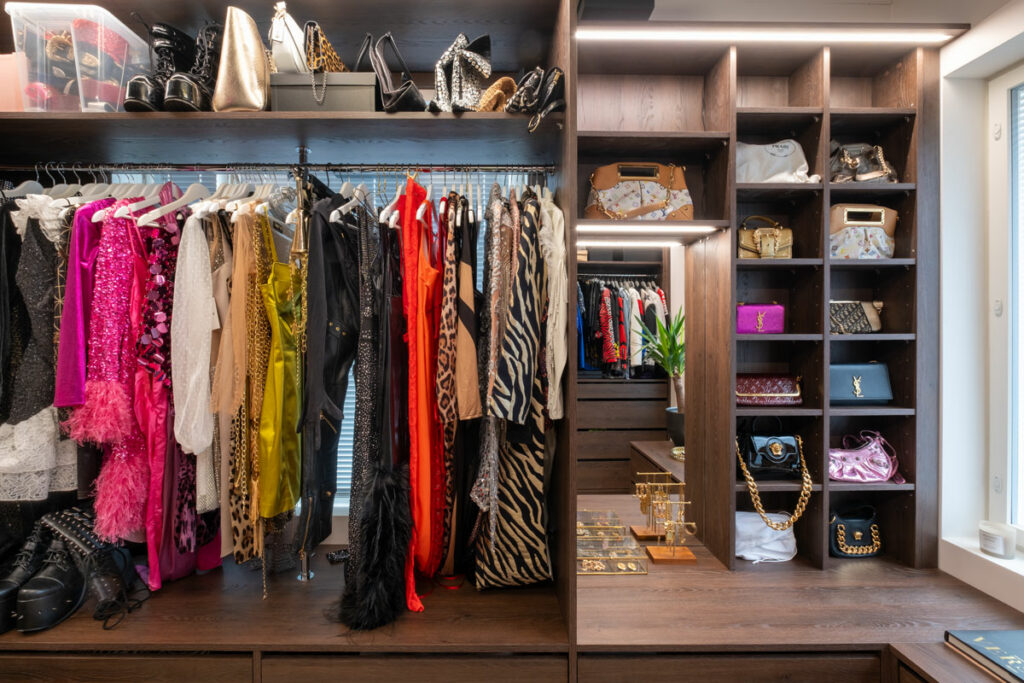 ”Hankin uuden kodin sillä ajatuksella, että yhdestä huoneesta rakennetaan huone vain vaatteille ja kengille ja niin tapahtui. Olen artisti, joka tunnetaan myös tyylistään, joten asua ja kenkää löytyy. Vaatehuone on minulle täysin ehdoton.”